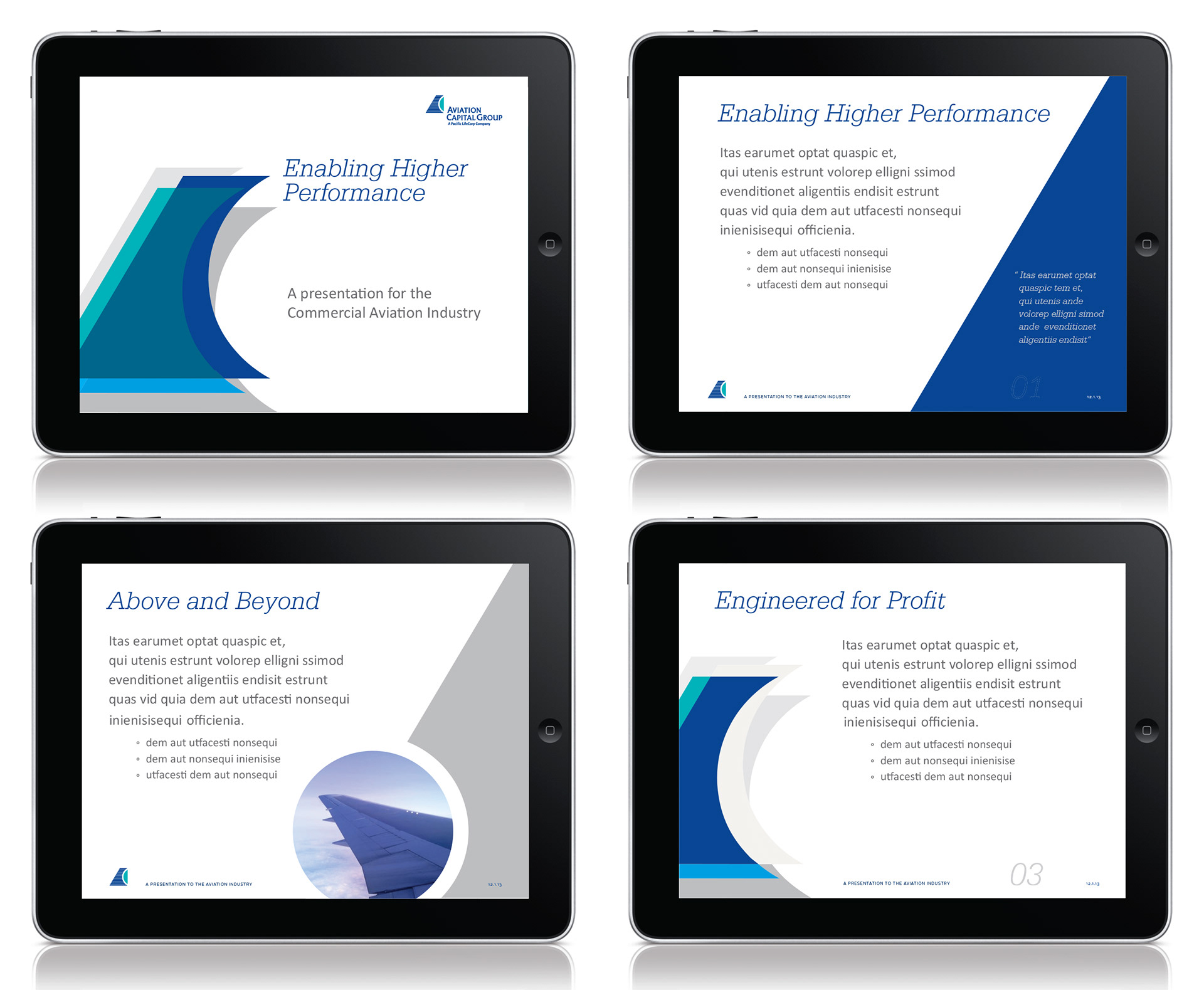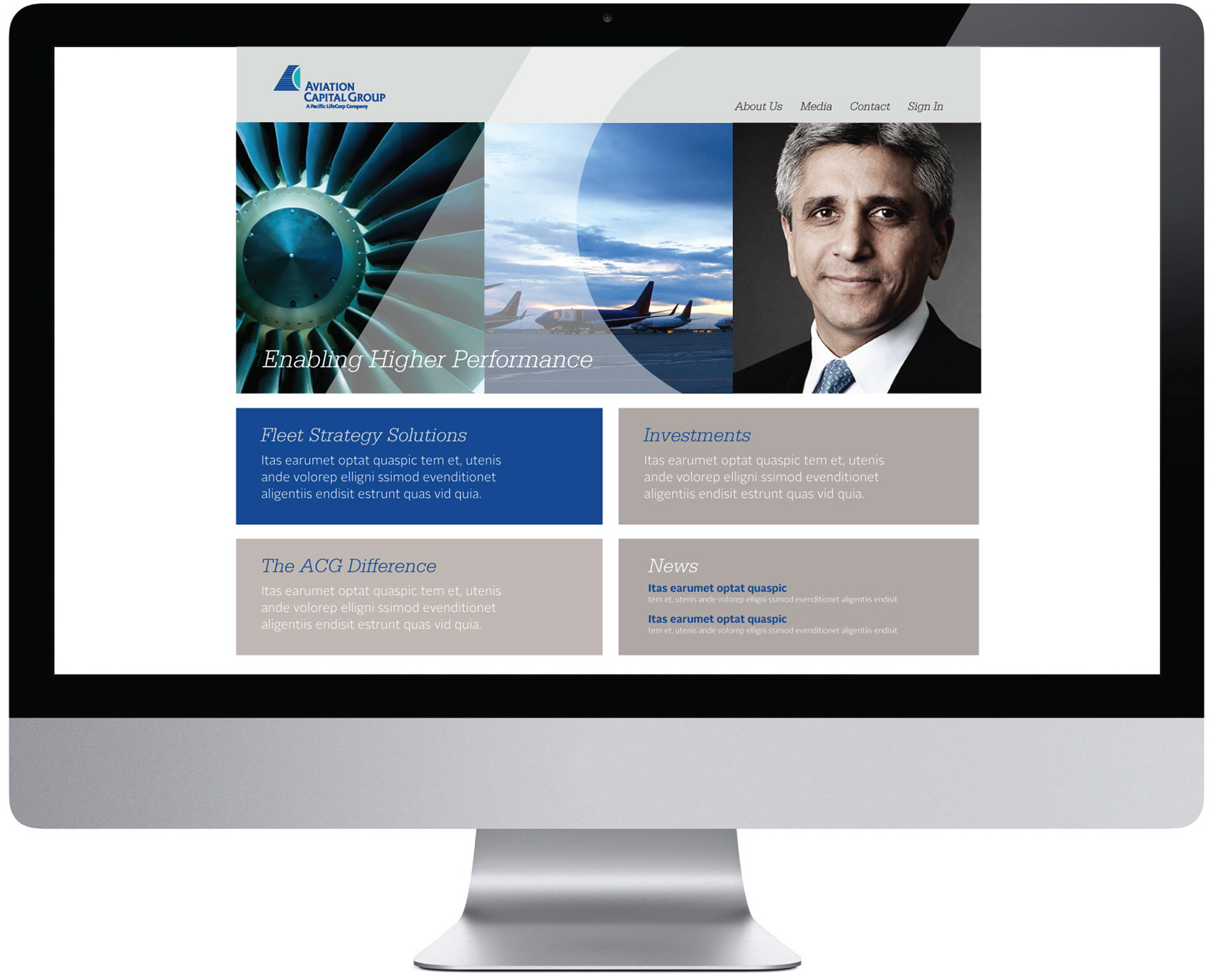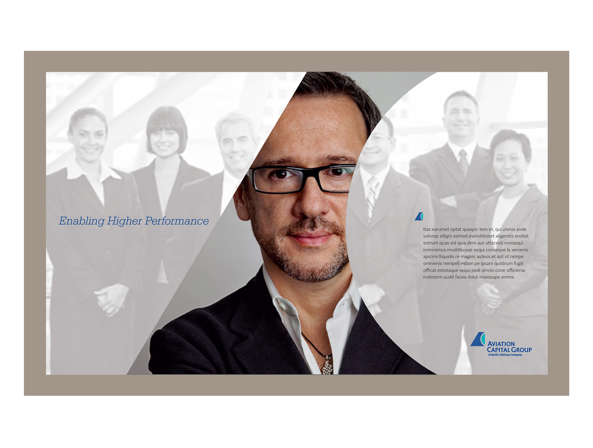 Aviation Capital Group is a 100M B2B business (owned by Pacific Life Insurance) that provides strategic consultation and funding for airline fleet solutions. This rebrand created an identity that is smart, conservative, innovative and energic. A neutral grey palette (the colors of sheet metal and aviation is paired with bright turqoise and blues, (calming colors evoking sky and money.)