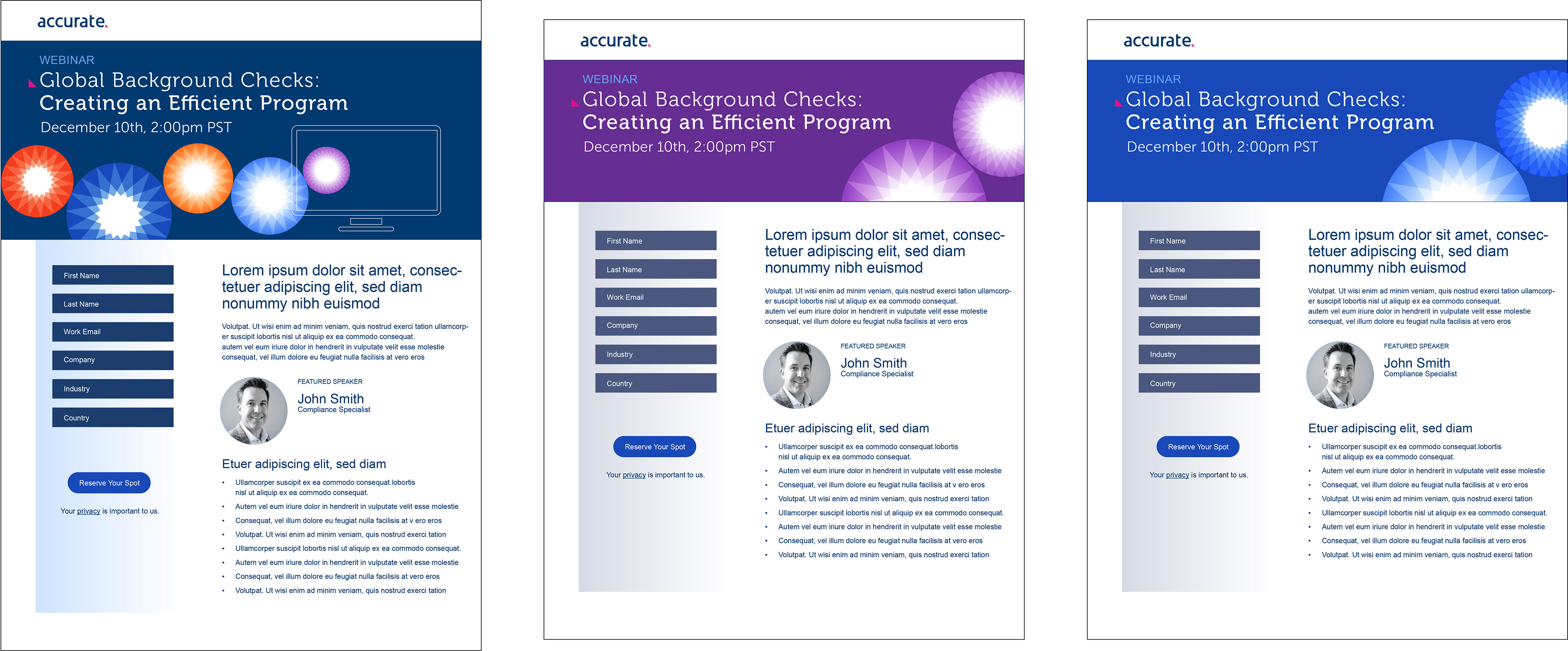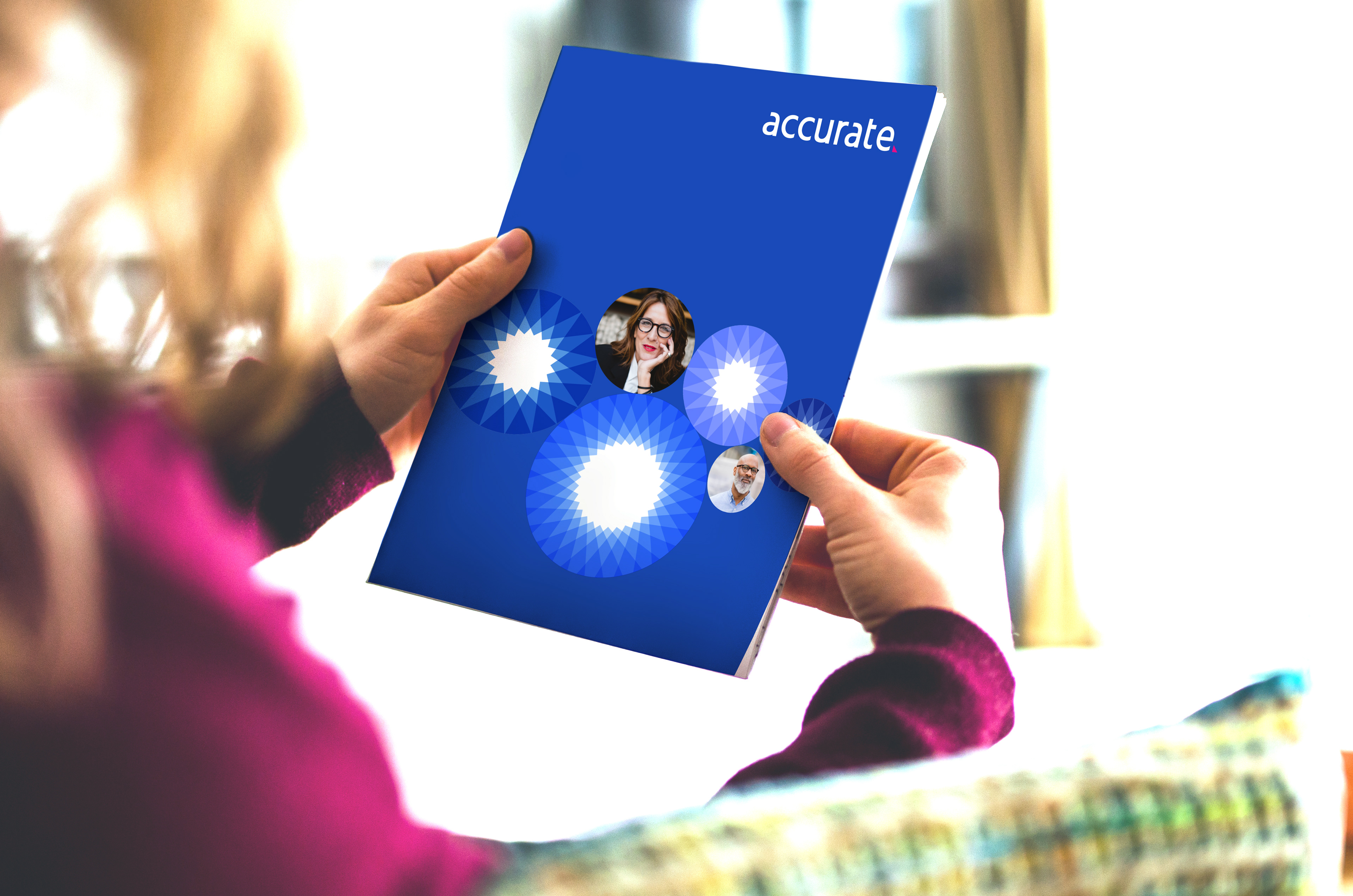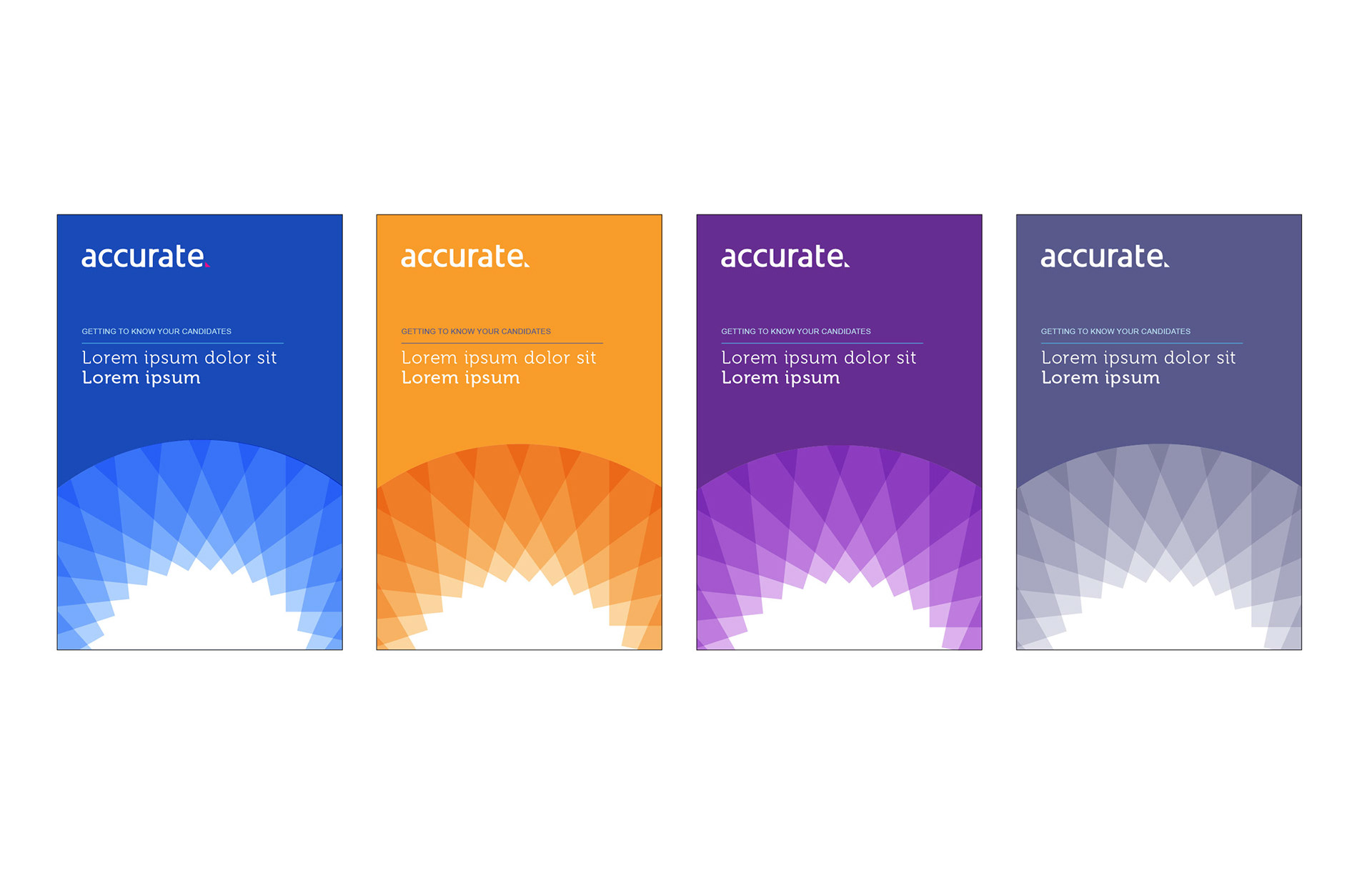 Accurate, a fast-growing HR screening leader, wanted to capitalize on its well-established, people-centered ability to deliver a better experience for clients and candidates alike. The new identity breaks them away from their competitive set and builds on the attributes of flexible, forward-thinking, people first and light-spirited. Using the pre-existing triangle in their logo and capitalizing on the pink accent, a new visual system of geometric bursts speaks to the fit, optimism and accuracy of their services.