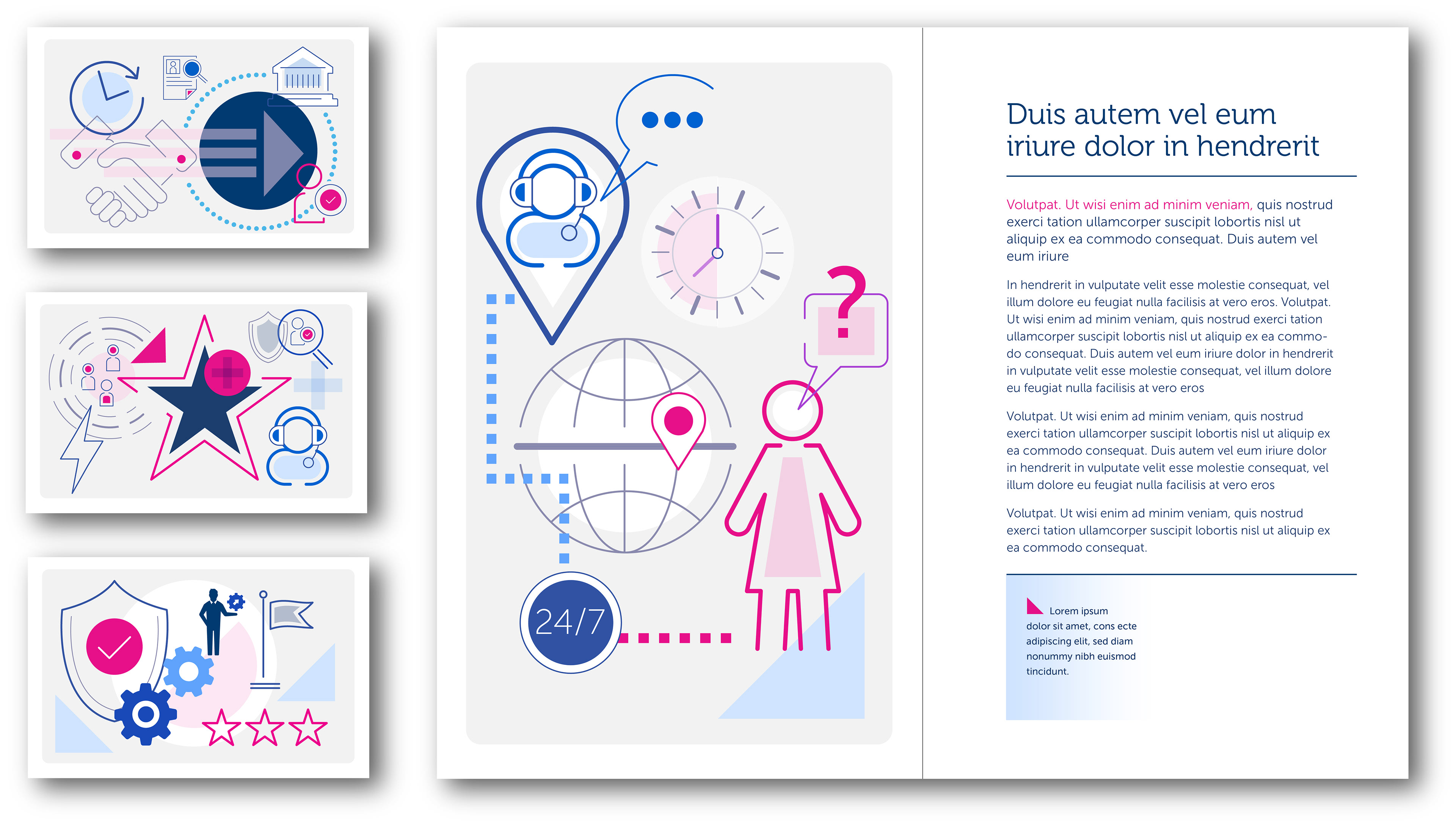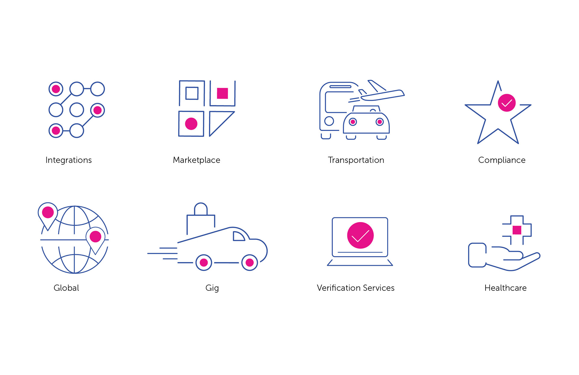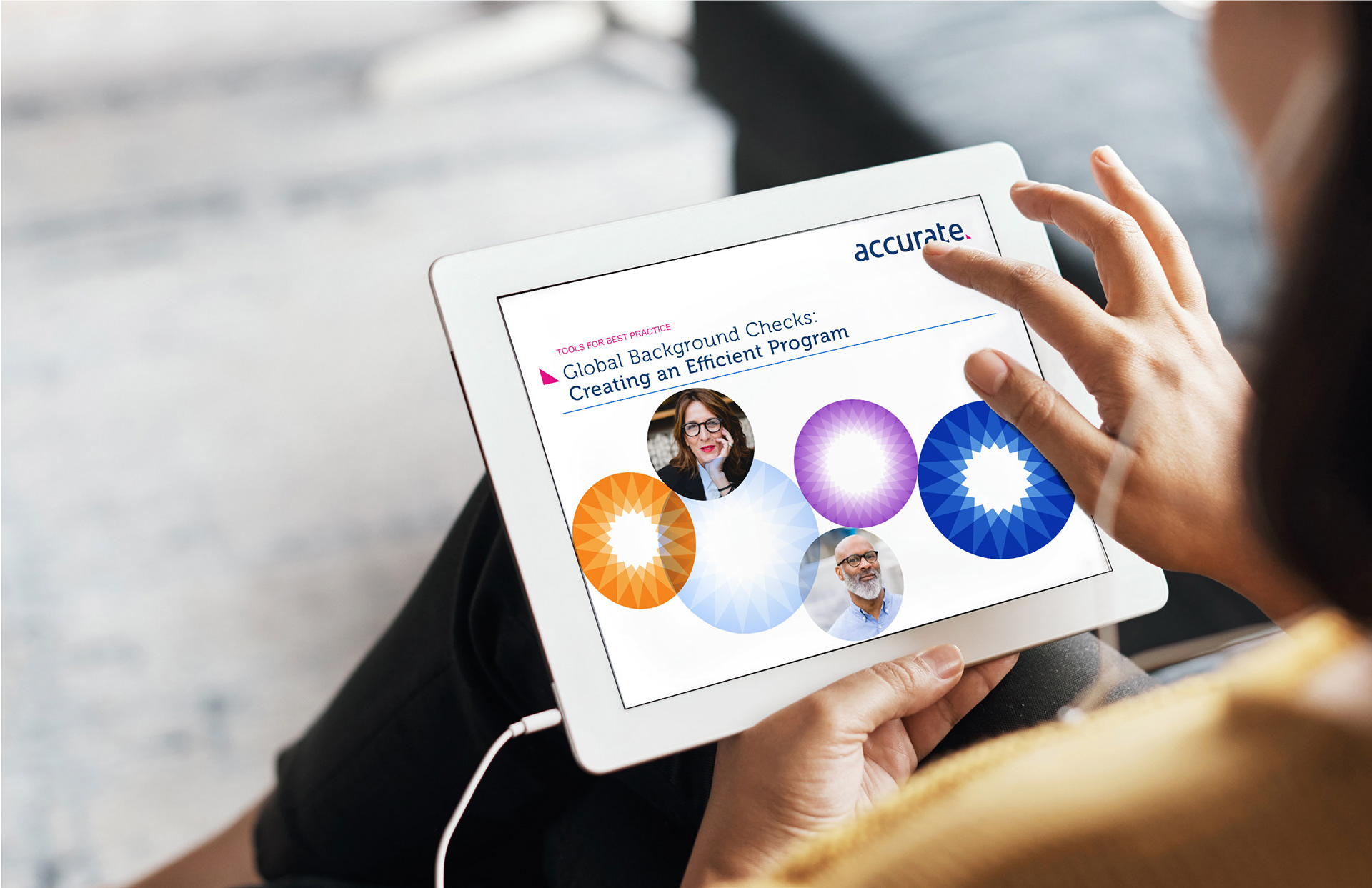 Accurate, a fast-growing HR screening leader, wanted to capitalize on its well-established, people-centered ability to deliver a better experience for clients and candidates alike. The new identity breaks them away from their competitive set and builds on the attributes of flexible, forward-thinking, people first and light-spirited. Using the pre-existing triangle in their logo and capitalizing on the pink accent, a new visual system of geometric bursts speaks to the fit, optimism and accuracy of their services.