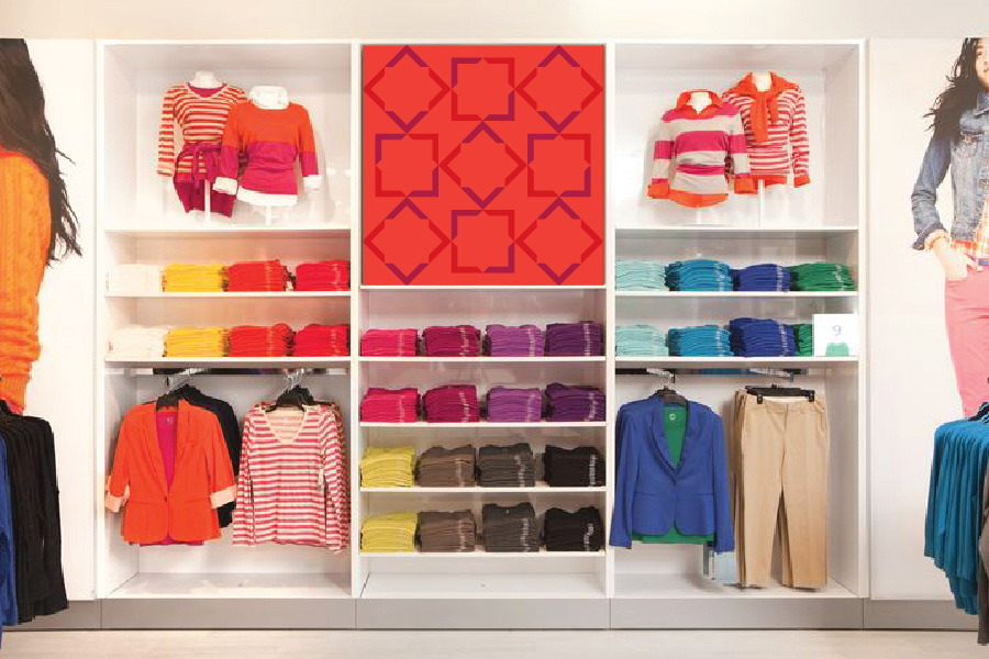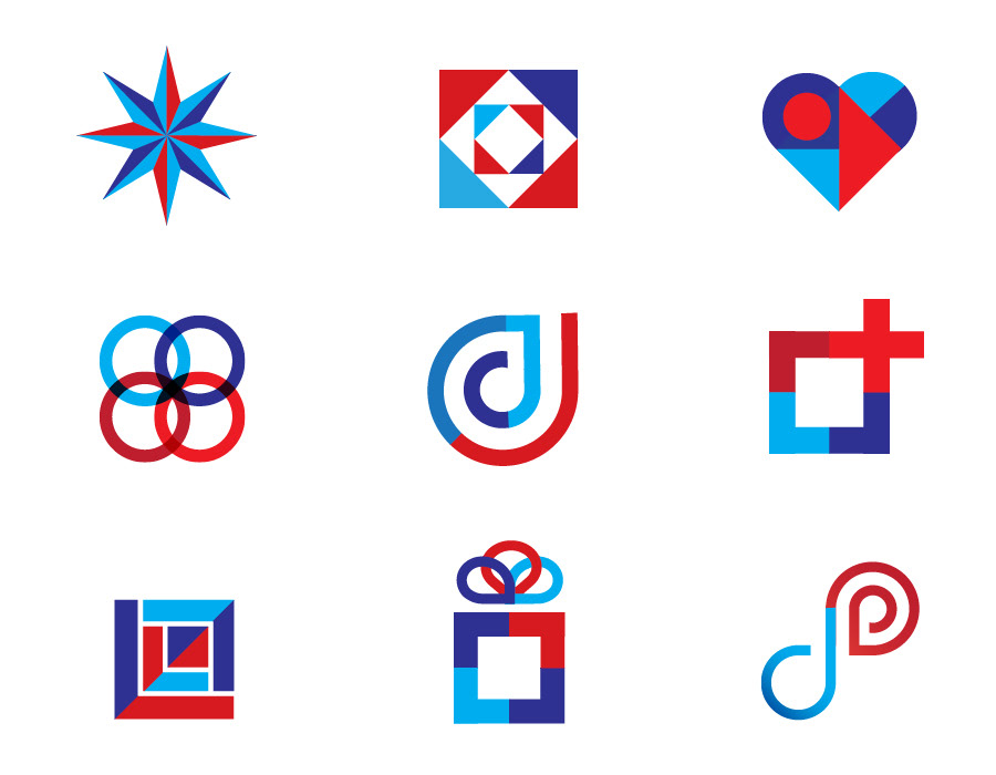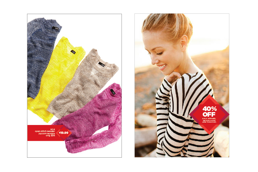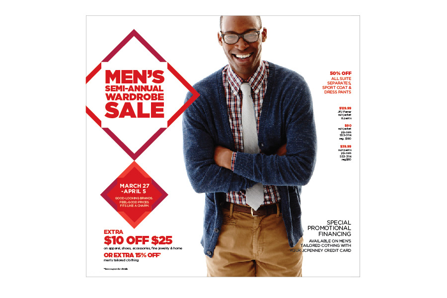 Ideas of celebration, American, and fit were major themes for the initial logo exploration. Four arrow shapes come together to form a perfect square, building on the heritage the client had with a square shaped logo. From this, a visual system was developed to be used across promotions and all media, centering on the idea of "right fit."