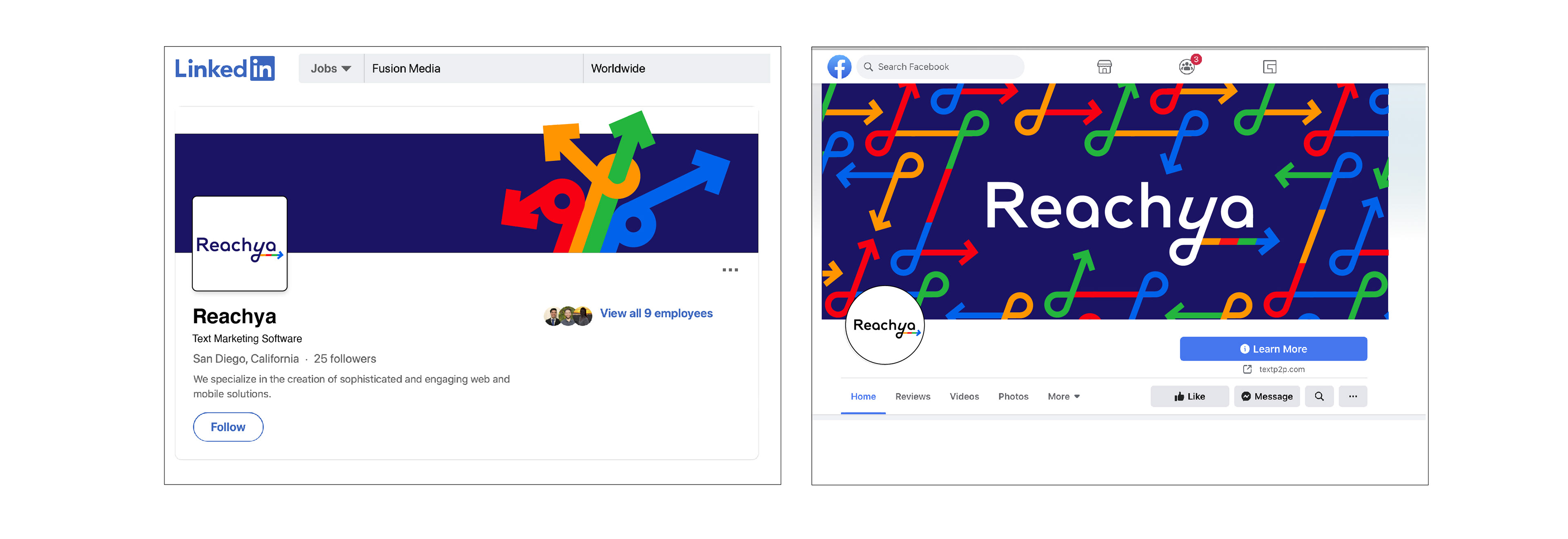 A new identity for a text based marketing app. Reachya allows their clients to create visual text messages and reach their audiences directly. A visually rich palette and style distinguish Reachya from existing competitors commenting on the visual toolkit that is a hallmark of the app.